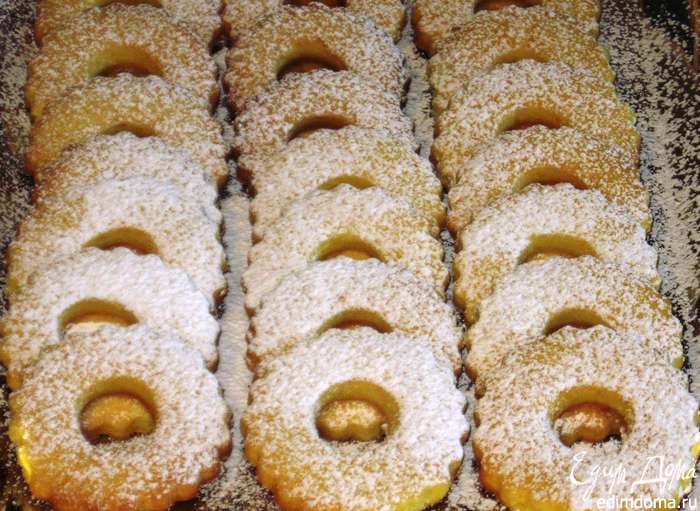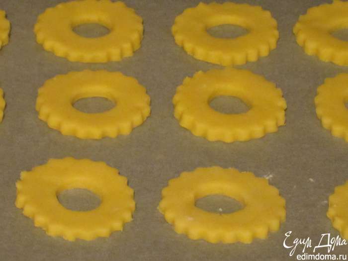 Противень выстелить бумагой для выпечки и выложить печенье.Выпекать в разогретой до 180°С духовке 15 минут.Следите за тем, чтобы печенье не подрумянилось.