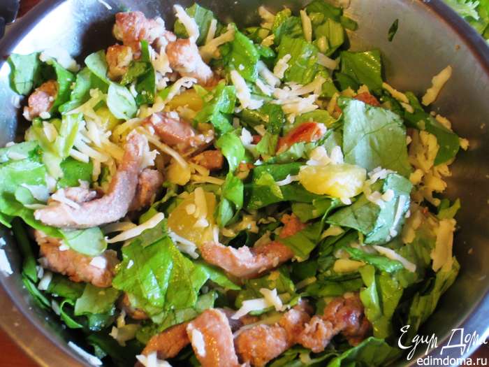 Филе индейки вымыть,обсушить бумажным полотенцем и нарезать тонкими полосками.В сковороде разогреть оливковое масло и обжарить филе.