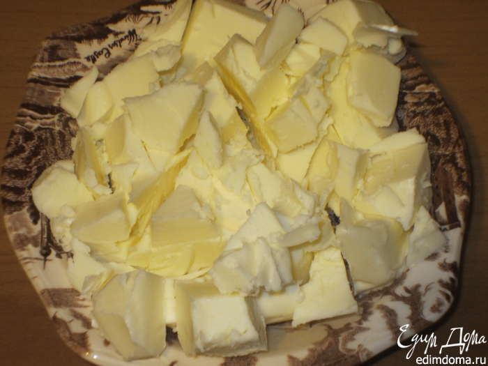 Добавить сливочное масло и замесить тесто ,работая кончиками пальцев ,до получения крупной крошки.
