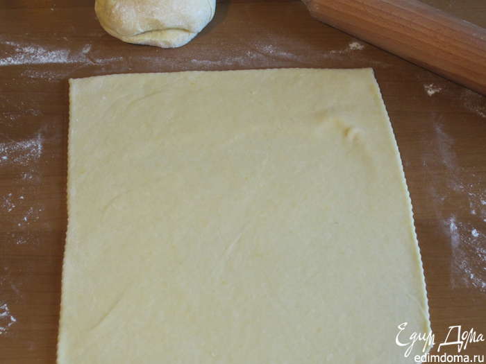 На присыпанной мукой рабочей поверхности раскатать тесто в очень тонкий пласт. Раскатывать лучше небольшими порциями, чтобы тесто не пересыхало.