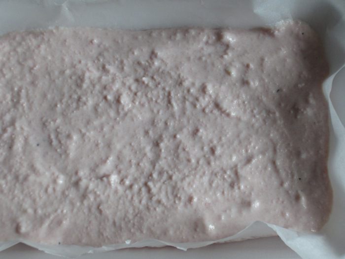 Выложить мусс тонким слоем в прямоугольную форму с пергаментом, разровнять и поставить в холодильник на 2 часа.