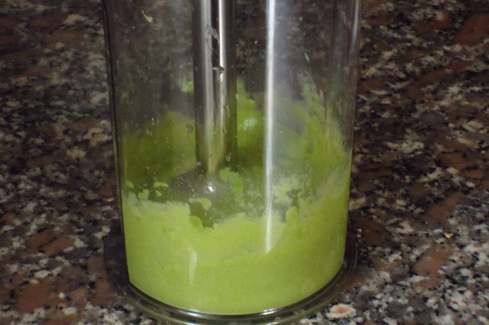 Авокадо очистить и вынуть косточку. В чашу блендера положить авокадо, зубчик чеснока, лимонный сок, соль и пюрировать до получения однородной массы.