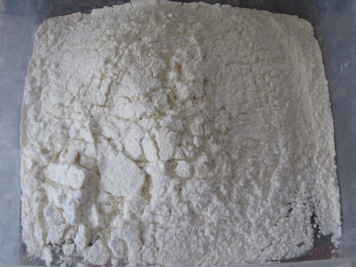 Не выключая миксер,попеременно с помощью столовой ложки ввести взбитые белки и муку с крахмалом.