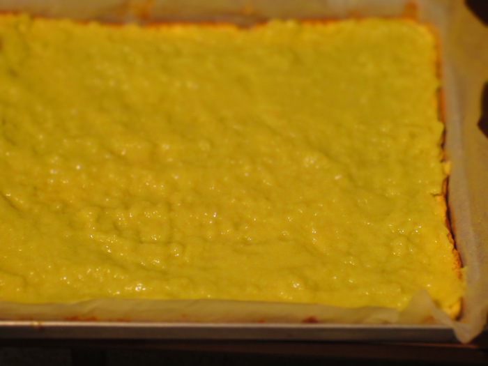 Выложить тесто в прямоугольную форму с пергаментом и выпекать в разогретой до 180 С духовке 25-30 минут.Готовый бисквит остудить на решётке.